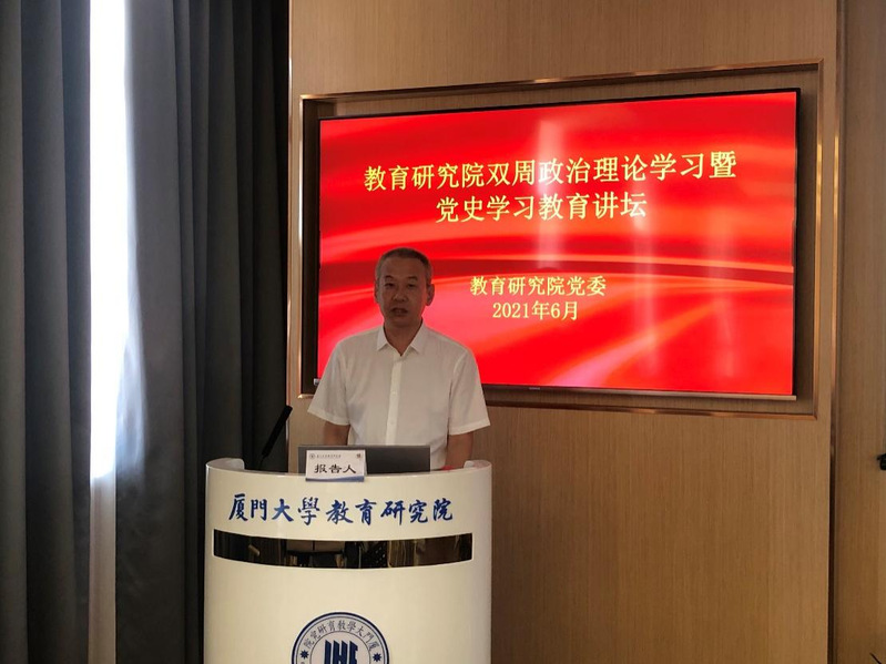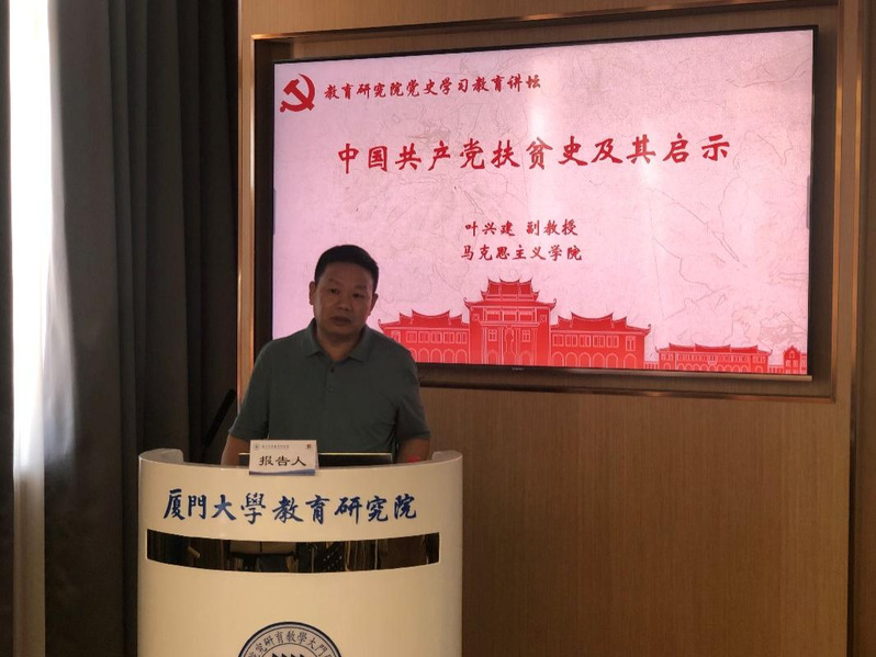 6月15日下午,教育研究院在院502报告厅举行党史学习教育讲坛系列活动暨党委理论学习中心组第四场讲座。由马克思主义学院副教授叶兴建为我院师生作“中国共产党扶贫史及其启示”专题讲座。院党政领导班子成员以及全院师生参加,现场参加学习的还有教师发展中心党支部,教务处现教中心联合党支部在教务处会议室和翔安校区设分会场参加学习,讲座由教育研究院党委副书记姚有新主持。