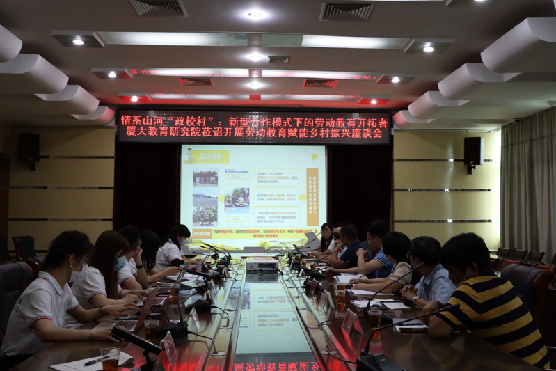 为落实对口帮扶乡村振兴工作,展现新时代教育研究者使命担当。2021年6月22日,厦门大学教育研究院“青年红色筑梦之旅”小分队一行赴漳州市诏安县西潭镇山河村开展劳动教育赋能乡村振兴专题调研。此次调研由厦门大学教育研究院团委书记魏艳老师、党务秘书吕铖老师带队,调研团队由2020级博士生凌鹊、俞兆达、季玟希、王怡倩,硕士生王君仪、王润青组成。团队一行受到诏安县郭孟超副县长等领导的亲切接待,诏安县教育局、农业农村局、政府办、人社局,及西潭镇、山河村相关负责人陪同调研并参加座谈。