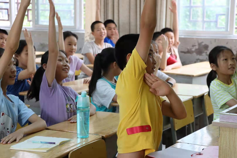 开班典礼结束后,按年级的不同将学生分为了A、B两班,进行破冰游戏,消融同学与实践队员间的陌生,增进感情。“大风吹”游戏,迅速拉近了队员们与同学们的距离,活动气氛热闹又愉快,之后大家又迫不及待地进行了“找零钱”、“击鼓传花”等不同的游戏,获得胜出的同学获得了丰富的小零食奖励,其他的同学也积极地展示才艺,加深了彼此的了解,教室里充满了欢声笑语,愉快的早晨很快就结束了。