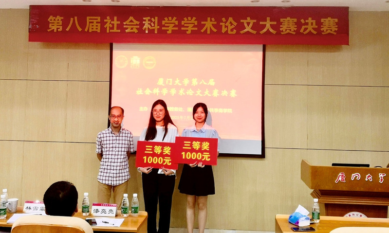 2021年7月23日,我院学生团队参加了厦门大学第八届社会科学学术论文大赛总决赛,并取得了研究生组三等奖的好成绩。学生团队由18级博士生胡小平,19级硕士生郭玉婷和博士生贾文军组成,郭玉婷同学担任团队队长。谢作栩老师担任项目指导老师。
