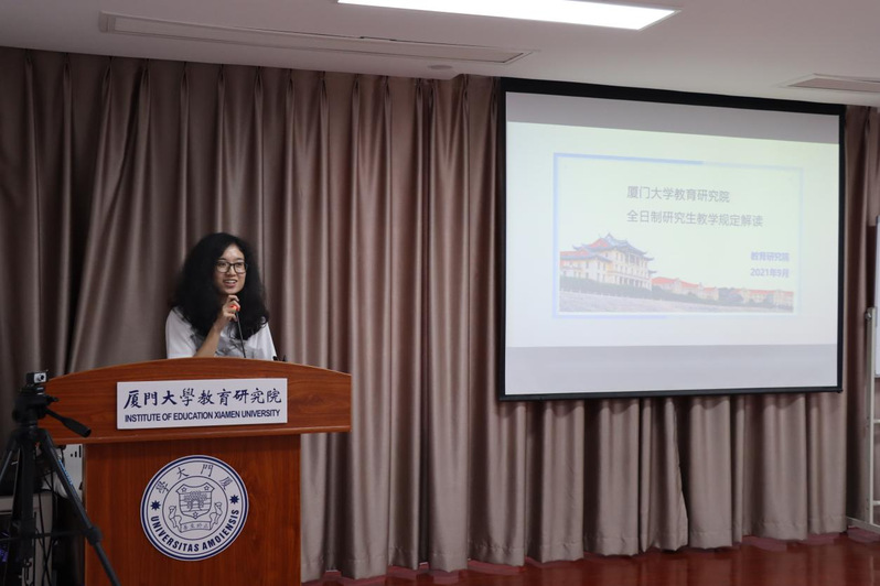 随后,院团委书记魏艳老师对校规校纪、校园安全及有关学生工作规定进行了解读,并就开学典礼、学术诚信、考试纪律、住宿要求、防疫规定等要求逐一进行说明,她着重强调了防盗、防诈骗等安全注意事项,提高同学们安全防范意识以及应对突发事件的能力。最后,魏老师真切地希望同学们之间可以相互帮助,友爱和谐,在厦大共同度过美好的校园时光。