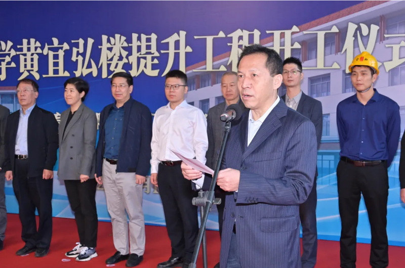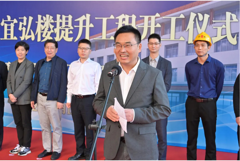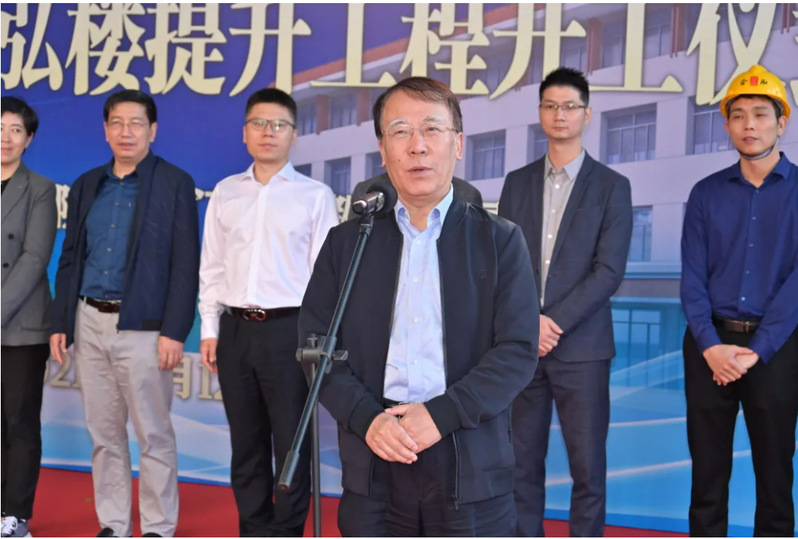 崔庆炜在致辞中,首先代表学校职能部门向工程的开工表示热烈祝贺。他表示,黄宜弘楼提升工程是学校的重点工程,学校职能部门将与相关单位密切配合,在材料、质量和进度上把好关,努力把黄宜弘楼提升工程打造成高质量、高水平的精品工程。