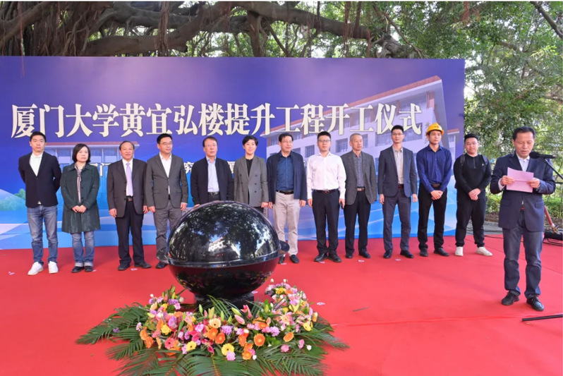 2021年11月12日上午,厦门大学黄宜弘楼提升工程开工仪式在黄宜弘楼前广场隆重举行。厦门大学原副校长、教师发展中心主任邬大光,厦门大学教育发展基金会秘书处副秘书长赵晓慧,校资产与后勤事务管理处副处长崔庆炜,校招投标中心主任王沈扬,教育研究院院长别敦荣,副院长覃红霞,党委副书记姚有新,厦门大学高等教育发展研究中心副主任郭建鹏,师生代表,以及工程设计、施工单位代表共同出席了开工仪式。仪式由厦门大学教育研究院党委书记刘振天主持。