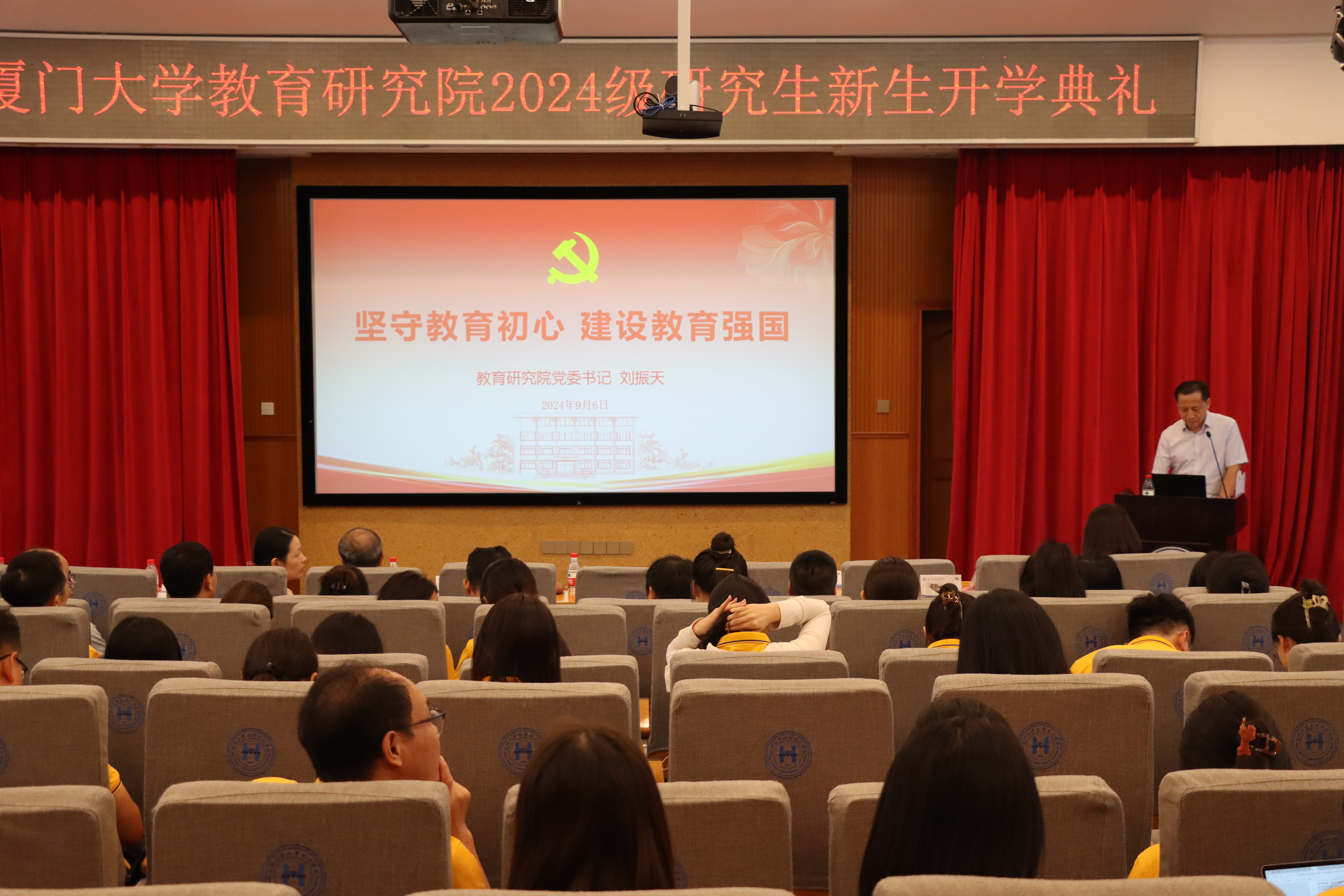 2024年9月6日下午,中心举行2024级研究生新生开学典礼。中心党政领导班子成员、全体教职工和2024级研究生新生参加典礼。典礼由教育研究院党委书记、中心主任刘振天教授主持。