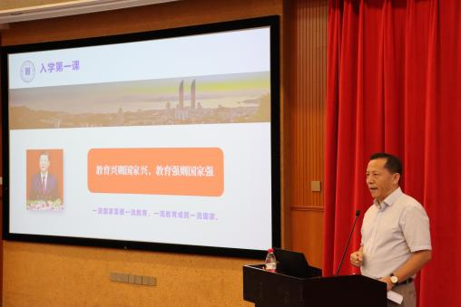 典礼结束后,刘振天教授为2024级新生带来“入学第一课”。他以“坚守教育初心 建设教育强国”为主题,从教育救国、科教兴国、教育强国和教育报国四个方面进行分享,教育引导新一代高教学子要培养扎实的学术功底、开阔的学术视野、活跃的学术思维,掌握科学的研究方法,不断精进写作能力,在传承中汲取力量、在创新中寻找突破,为国家教育事业的发展开辟出更加广阔的道路,以实际行动坚定教育报国之心。