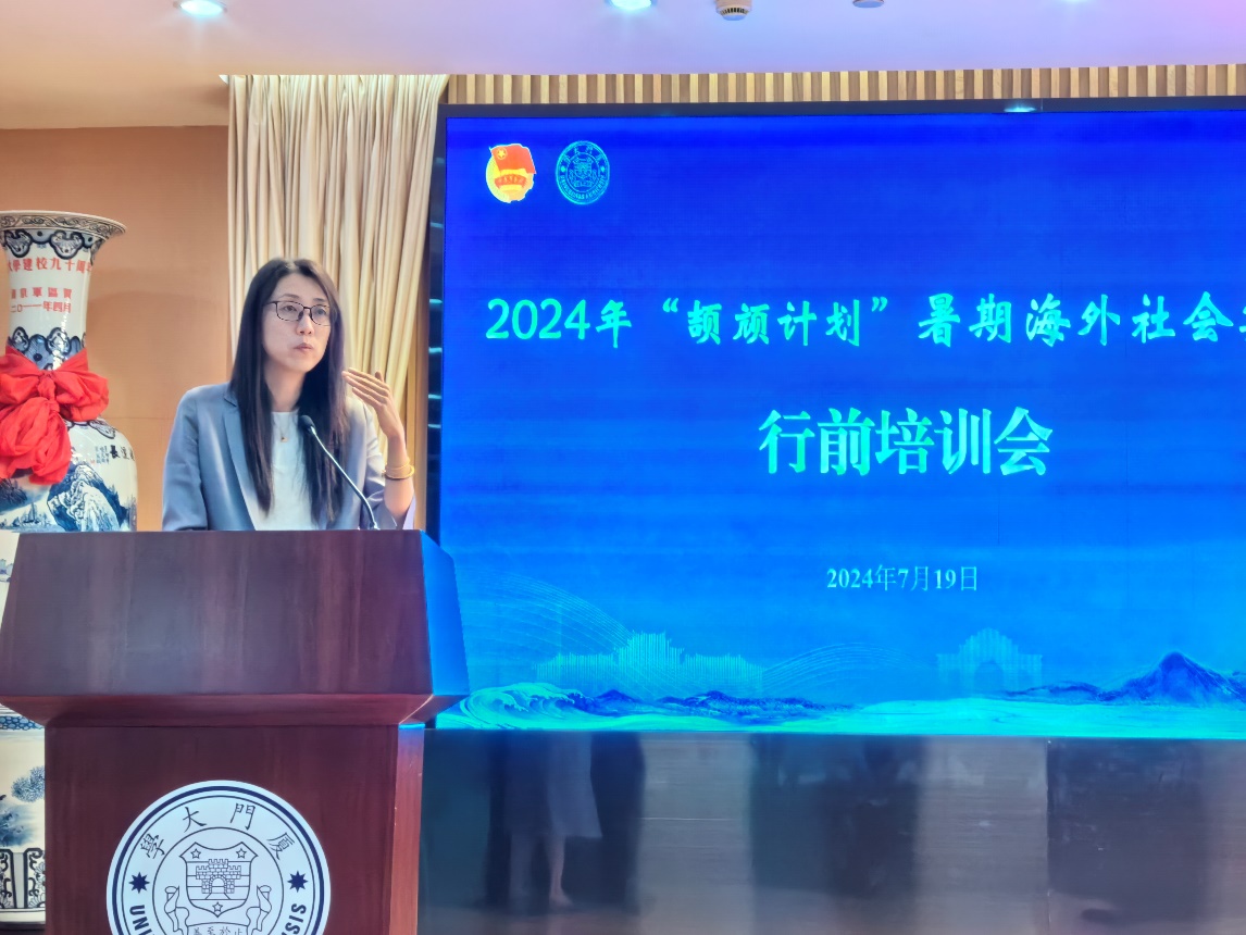 在本期“颉颃计划”开展过程中,吴薇老师积极参与各方面的准备以及和各相关单位的联系事宜等。在7月19日下午的2024年“颉颃计划”大学生暑期海外社会实践行前培训中,吴薇老师以“Our Cultural Experience”为题,和大家分析跨文化交流的过程及注意事项。在联系各参访单位后,吴薇老师指导同学们搜集相关信息做好前期学习了解。在参访过程中,吴薇老师介绍厦门大学、厦门大学的“颉颃计划”和厦门大学高等教育发展研究中心的特色等并鼓励同学们从各自专业背景思考和提问。在每次活动之后,吴薇老师及时和大家一起做好调研总结。