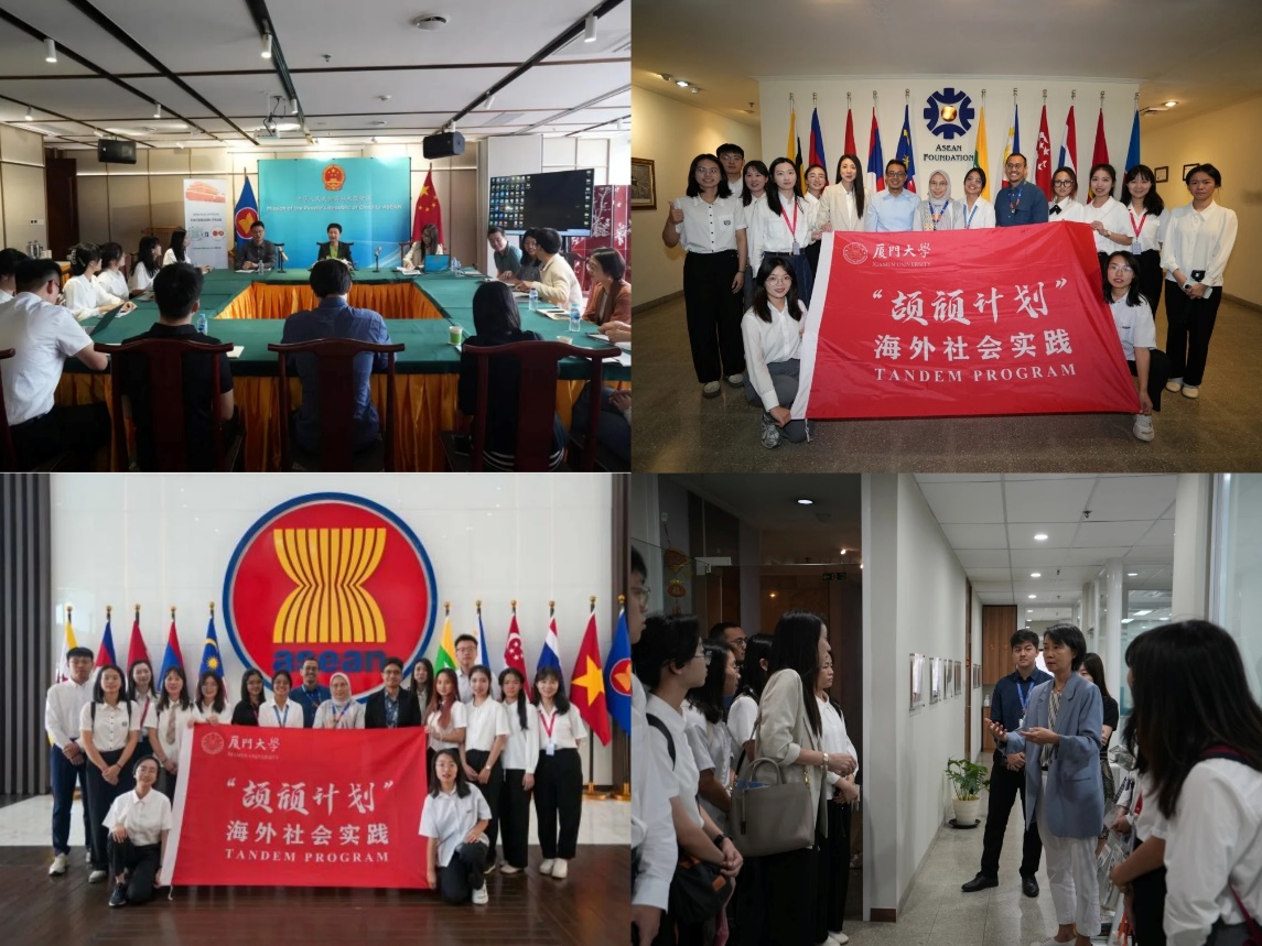 实践队走访中国驻东盟使团和东盟基金会等我国驻外外交机构和国际组织并开展座谈调研,就中国-东盟合作的现状及挑战、青年在“一带一路”中的作用等内容进行了深入探讨与思想碰撞。中国驻东盟使团耿海凌参赞对青年人的无限可能充满期待。东盟基金会的高级项目主管伊兰·阿斯科拉尼(Ilan Asqolani)介绍了东盟基金会的建立和活动,并对即将由东盟基金会和厦门大学联合主办的“中国—东盟青年交流营”充满期待。宋备备参赞也向实践队介绍了中国—东盟合作基金的主要工作内容并希望未来有更多的厦门大学学子参与。