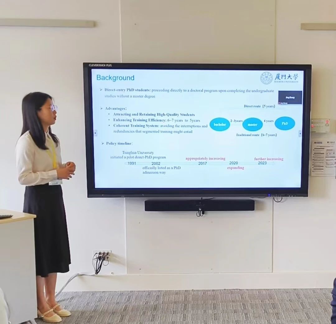 在分论坛报告中,杨洋博士生作了题为《理工科直博生科研能力增值的影响因素研究:基于38所“双一流”高校直博生调查的实证分析》(Factors Influencing Research Competence Development among STEM Direct-entry PhD students: An Empirical Analysis from a Survey of 38 'Double First-Class' Universities)的报告。该研究基于相关调查数据,采用计量方法全面分析理工科直博生科研能力增值的影响因素。