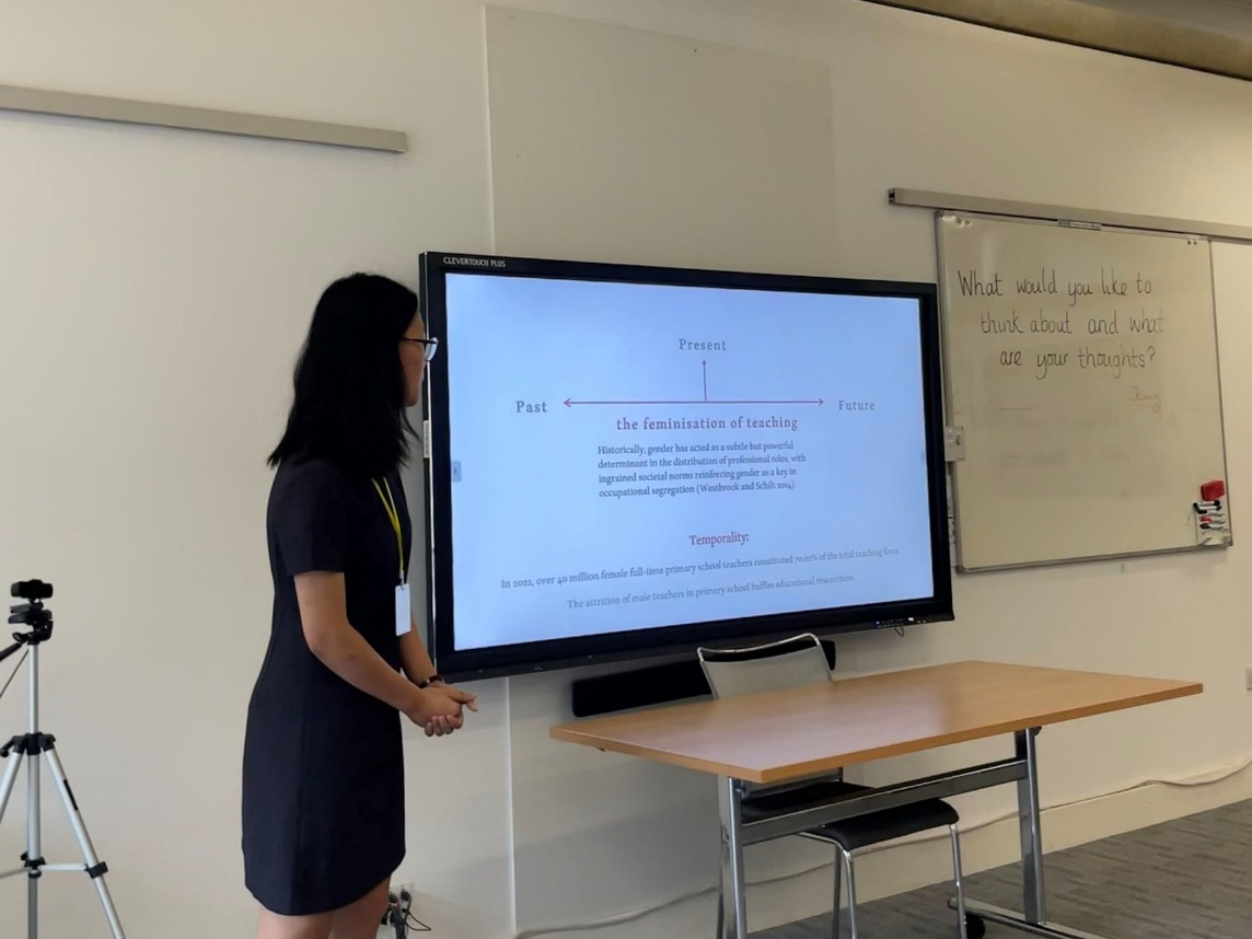 傅其娅硕士生作了题为《职业女性化背景下小学男教师职业幸福感的叙事研究》(Masculinity and Professional Well-Being: A Narrative Study of Male Primary School Teachers in the Context of Teaching Feminisation)的报告。该报告探究了性别气质对小学男教师职业幸福感和教师专业化的影响。