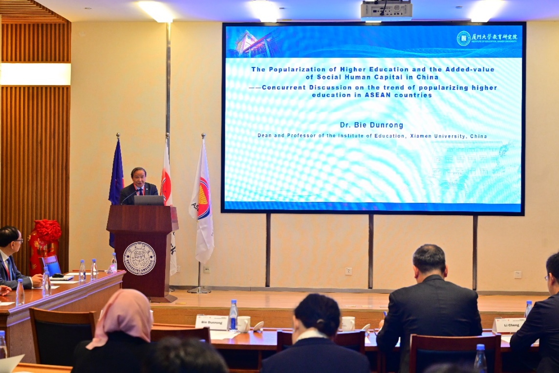 会议邀请别敦荣教授作主旨报告,他以“中国高等教育普及化及其对社会人力资本的贡献——兼论中国与东盟国家高等教育交流合作”为题,全面阐述了中国高等教育普及化发展历程和现状、东盟高等教育普及化发展与前景以及中国与东盟高等教育合作交流展望。别教授指出,高等教育领域的深度合作将为中国和东盟国家乃至全球提供经济和社会可持续发展的不竭动力。他的精彩报告给大家留下了深刻的印象,在场的专家们给予高度评价,别教授热情地回应了现场专家们提出的问题。