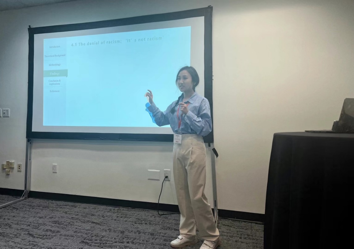 在此次会议中,余婧然助理教授共参与了三个小组论坛的活动。其一,在“Rural Students, Education and Social Mobility in China(中国农村学生、教育与社会流动)”小组论坛中担任评议人;其二,在“The Emotional Imprint of Social Mobility: Cultural Capital and Rural Students in Chinese Universities(社会流动的情感印记:中国大学的文化资本与农村学生)”小组论坛中作为合作者参加;其三,在“The persistent oppression of racism in global higher education(全球高等教育中持续存在的种族压迫)”小组论坛中做了题为“The post-racial myth: Rethinking Chinese university students’ experiences and perceptions of racialised microaggressions in the UK”的报告。报告反思了新自由主义与优绩主义盛行背景下英国高等教育的后种族主义迷思,回应了大会主题并提供了英国语境下的实证研究发现,强调了关注亚裔群体种族主义经历的重要意义,与其他报告互为补充并提供了新的思考方向。会议现场气氛活跃,与会者对留学生在海外的种族主义遭遇产生了共鸣,由此提出了诸多建设性问题,并开展了深入交流讨论。