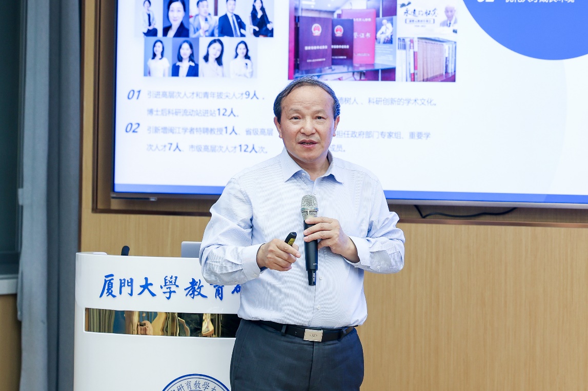 高等教育发展研究中心别敦荣教授介绍了厦门大学高等教育发展研究中心一流学科建设工作情况,总结了中心在师资队伍建设、人才培养、科学研究、咨政服务、国际交流以及办学条件改善等方面所取得的突出成就,强调在一流人才队伍建设、中青年学科带头人培养、新兴高教研究领域开拓和国际交流合作等方面仍有提升空间。教师代表发言分享了自己的主要研究领域和取得的主要研究成果,展现了高等教育发展研究中心教师队伍的多样性、研究实力和发展潜力。