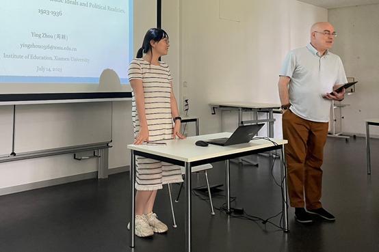 2023年7月14-17日,应德国哥廷根大学东亚系系主任施耐德教授(Prof. Dr. Axel Schneider)邀请,中心助理教授周颖访问了哥廷根大学,在该校东亚系作学术讲座,探讨了近代政治社会变迁过程中教育体制沿革与教科书发展的关系。她认为,近代教育体制沿革与教科书发展是两个平行但相互关联的过程,一方面,教育制度随社会政治变迁而演进,体现在不同时期教育目标、内容、形式的多变;另一方面,在社会、政治、道德秩序的不断重建中,近代政治家、知识分子、教育家力图通过教育改革培养合格的国民以实现特定的社会政治理想。讲座后,在场的老师和同学展开了热烈的讨论。