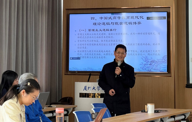 王洪才教授的报告深入浅出、理实结合,师生就中国式高等教育现代化的普遍性与特殊性、如何培养具有自主性的中国式高等教育现代化人才等问题进行了讨论和交流。王洪才教授逐一解答,听众受益匪浅。邬大光教授指出,现代化唯一的标志是人的现代化。西方大学制度对中国大学制度有很大影响,但中西文化不同,必然在办学过程中出现一些问题。最后,刘振天教授从理论与实践、理想和现实批判和建设等方面对报告进行总结,让师生更加深入了解如何面向现代化并建设中国式现代化。