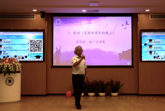 除了学生的精彩表演之外,杨广云老师也为大家带来了一首《莫斯科郊外的晚上》,婉转美妙的俄语歌声诉说着杨老师与俄罗斯这个国度的不解之缘。
