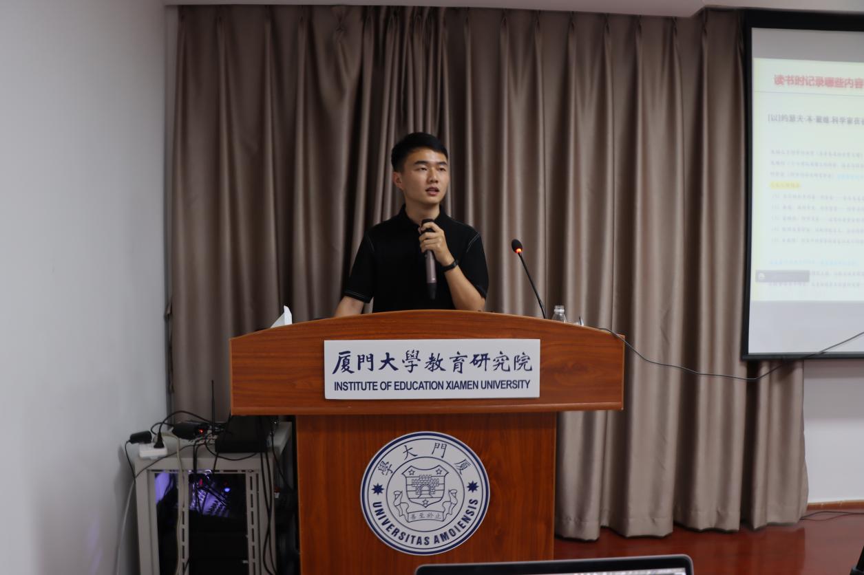 分享伊始,赵祥辉认为研究生就读期间很容易因为学术无助而陷入“原子化处境”当中,因此他对中心为同学们提供的朋辈支持互助平台表示了感谢。随后,他围绕四方面问题展开了分享:第一,体悟学科魅力。他认为教育的魅力在于“渡人渡己”,从事教育事业有助于让人体会到灵魂互动、教学相长的乐趣。而研究生从事教育研究,一方面具备着“在场”的优势,因为时刻生活在教育场域当中,所以与研究对象有着天然的亲近性,开展研究更容易调动自己的生命体验和教育经验;另一方面教育学本身的开放性和综合性,也使研究生群体能够灵活运用不同学科的理论、知识与方法来探讨教育问题。第二,锚定研究领域。赵祥辉认为选定研究领域,一是要结合自己的兴趣爱好与教育体验,二是要有成熟的理论可供对话,三是要有大量的实证性研究能充当论据。基于此,他向同学们推荐了教育社会学、学生学习以及研究生教育三大领域,并以王国维的学问三境界来类比选择学术领域的重要性,并结合自己的经验鼓励同学们选择一个具有延展性的学术领域展开深耕。第三,打造研究链条。为了向同学们展示如何打造适合自己“输入-思考-输出-改进”的学术研究链条,赵祥辉同学从自身经历出发,借用生动有趣的生活实例与文章例子,启发同学们要善于规律性阅读与记录、通过多种途径进行随时随地的联想与反思、围绕研究领域养成写作习惯、通过求助师友与参与会议进行论文改进。第四,养护研究心态。赵祥辉认为焦虑俨然已成为一个贯穿于研究生求学全过程的心理普遍症候,他认为与其寄望于学校心理检测的精准识别与导师/朋辈的主动发现,不如早日实现自我意识的觉醒。基于这个判断,他通过分享个人经历,探讨了养成学术志趣、做好职业规划、不断心理调适、形成元认知对实现心态平和的重要性。